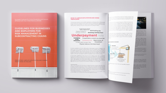 Published in 2018Opas yrityksille ja työnantajille riskienhallintaan erityisesti alihankintaketjuissa - Työvoiman hyväksikäytön ja ihmiskaupan ennaltaehkäisy Suomessa